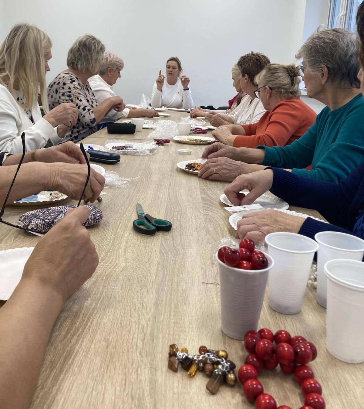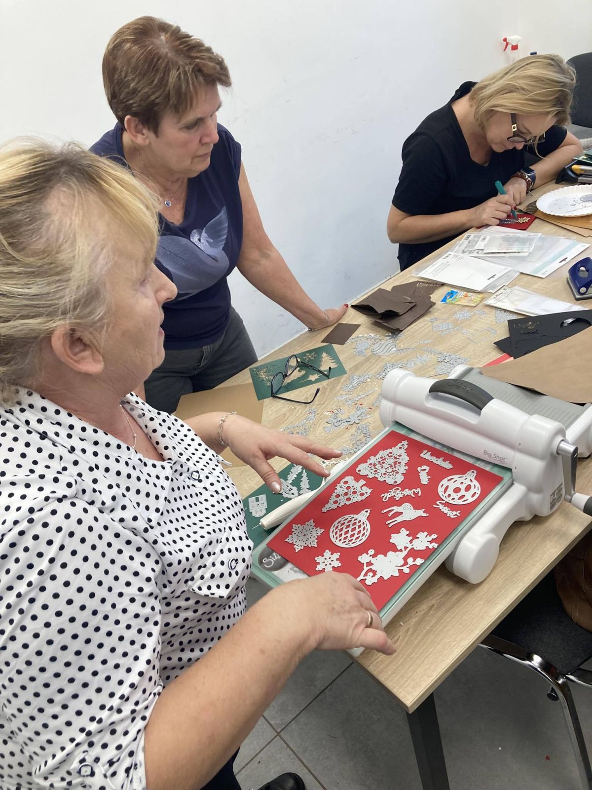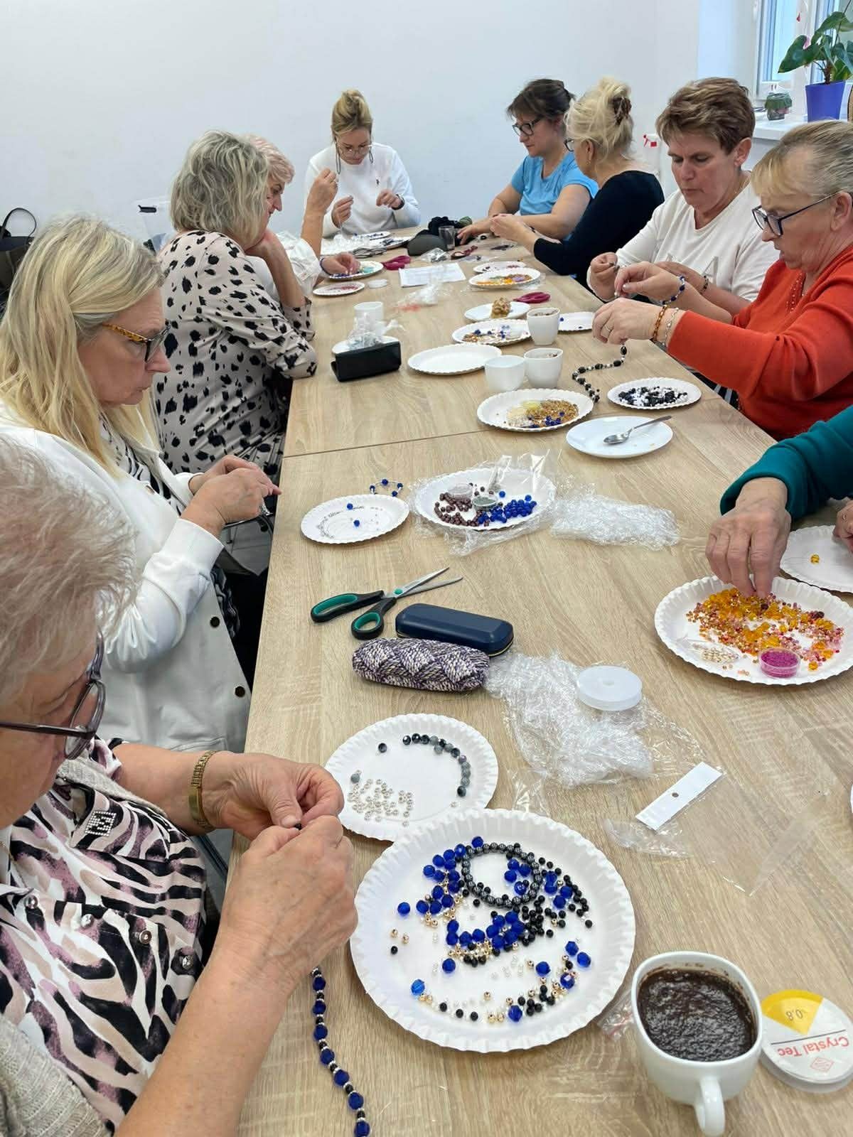 W soboty dominowała twórczość. Terapeutka zajęciowa Ewa, jak zawsze pełna pomysłów, zachęcała do tworzenia biżuterii i drobnych ozdób. Powstawały piękne korale, bransoletki, smycze do telefonów czy pierścionki. Rozpoczęliśmy również przygotowania do Świąt Bożego Narodzenia — dzięki maszynie do wykrawania CRAFT oraz bogactwu dekoracji mogliśmy stworzyć wyjątkowe kartki świąteczne.