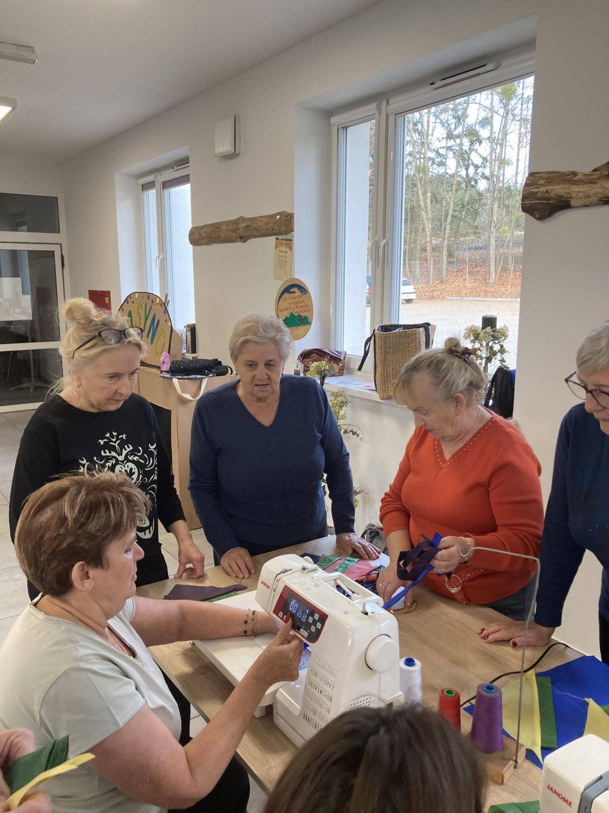 Odbyły się także zajęcia krawieckie. Krawcowa Małgosia zorganizowała małą, doskonale wyposażoną pracownię, w której pod wprawnymi dłońmi uczestniczek powstawały praktyczne i estetyczne siatki na zakupy. Turkot maszyn towarzyszył twórczej pracy przez całe zajęcia.